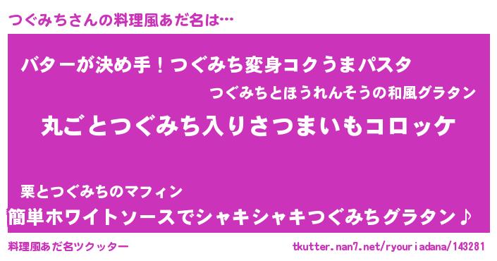 | ヘコむあだ名 | 『つぐ太郎』『つぐみち(苦笑)』 |