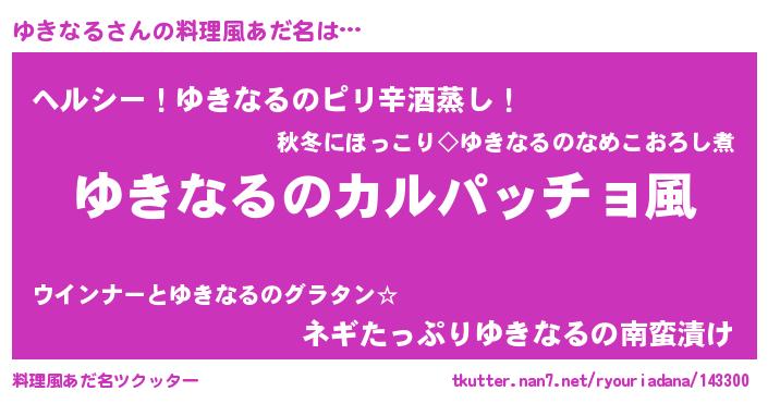| ヘコむあだ名 | 『ゆきもー』『なまこ酢』『ゆきを』 |