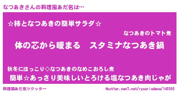 | ポケモン風あだ名 | 『ナツアダネ』『メロナッツ』 |