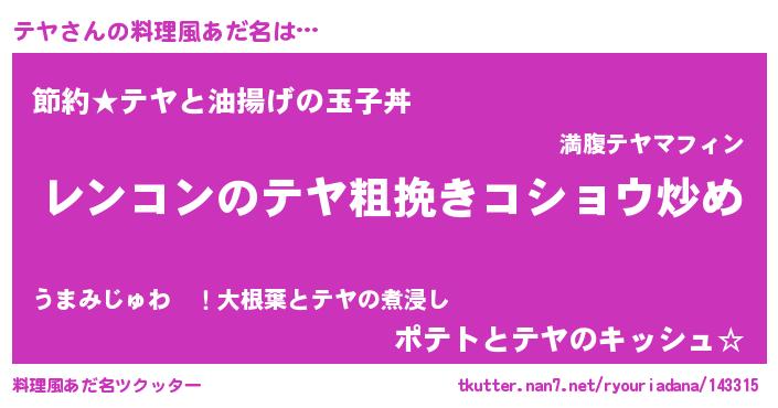 ポケモン風あだ名 | 『テヤセウス』『テヤチュウ』 |
