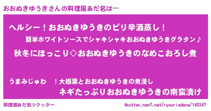 | 意味不明あだ名 | 『自称おおぬきゆうき』 |