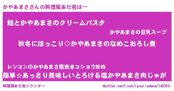 | ヘコむあだ名 | 『かやあまさ(小並感)』『かやっ子』 |