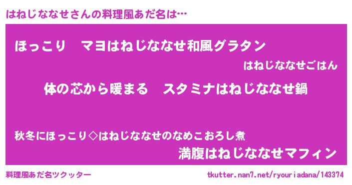 | 意味不明あだ名 | 『はねじななせフォーエバー』 |