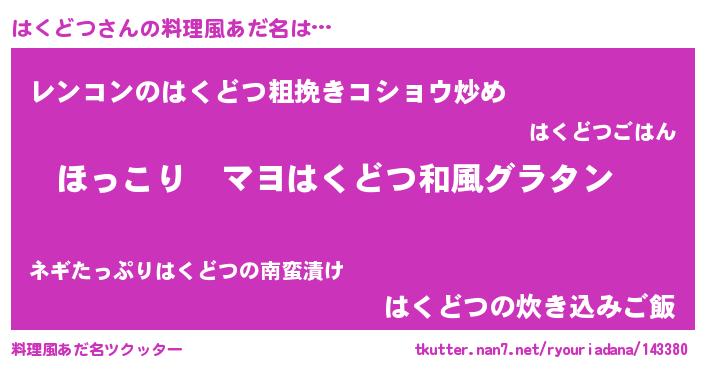 | 意味不明あだ名 | 『住所不定無職はくどつ(81歳)』 |