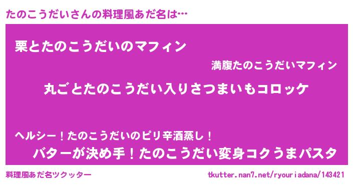 | 意味不明あだ名 | 『住所不定無職たのこうだい(9歳)』 |