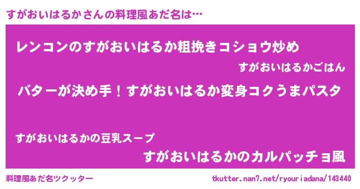女子向けラノベタイトル風あだ名 | 『すがおいはるか恋絵巻』 |