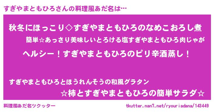 | 意味不明あだ名 | 『自称すぎやまともひろ』 |