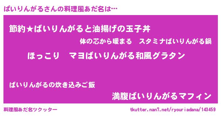 | 意味不明あだ名 | 『住所不定無職ばいりんがる(41歳)』 |