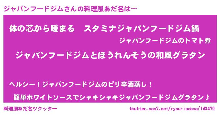 | ヒーロー風カッコイイあだ名 | 『ウルトラジャパンフードジムマン』 |