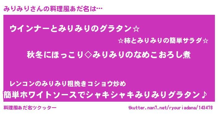 | ヘコむあだ名 | 『なまこ酢』『みりぷりん』 |