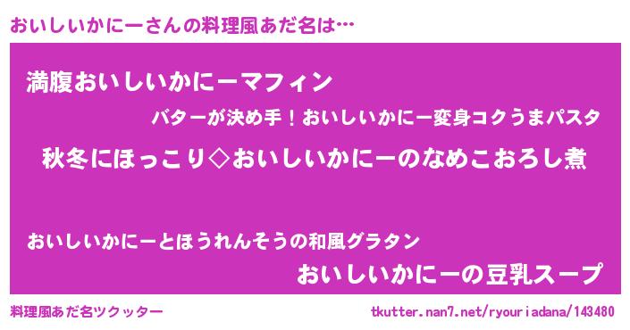 | 意味不明あだ名 | 『永久保存おいしいかにー』 |