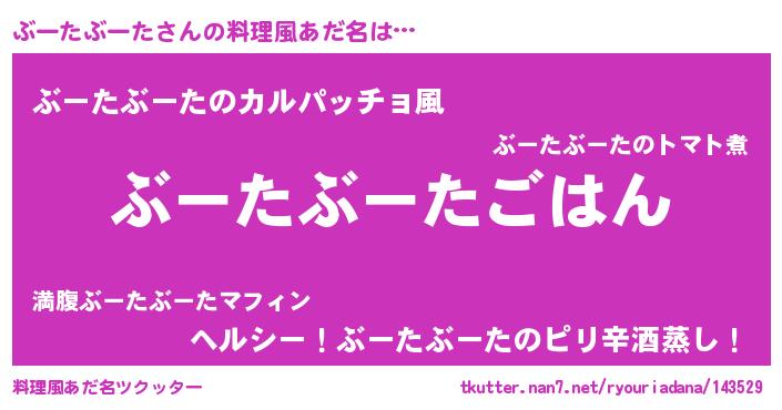 | 胡散臭い通販商品みたいなあだ名 | 『世界中を虜にした100年もののヴィンテージワイン…その名も「ぶーたぶーた」』 |