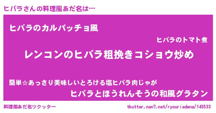 | ヘコむあだ名 | 『ヒバラ(笑)』『ヒバにー』『つくし』 |