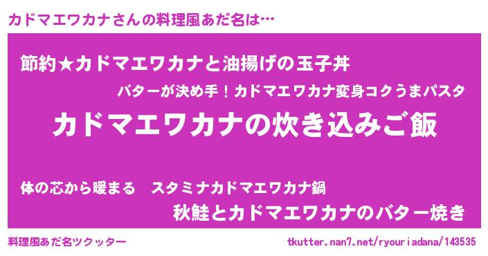 | 胡散臭い通販商品みたいなあだ名 | 『モテモテ間違いなし霊験あらたかなお札…その名も「カドマエワカナ」』 |
