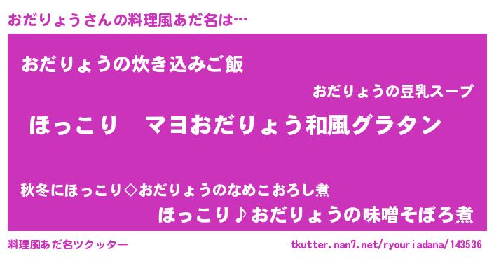 | 胡散臭い通販商品みたいなあだ名 | 『あなたにだけ特別に提供する100年もののヴィンテージワイン…その名も「おだりょう」』 |