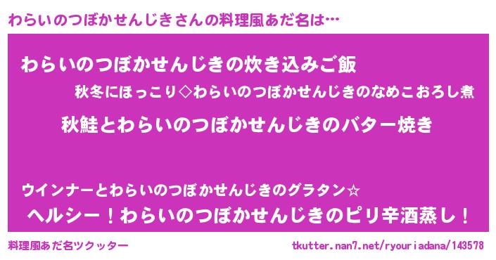 | 可愛いあだ名 | 『わらいのつぼかせんじきママ』 |