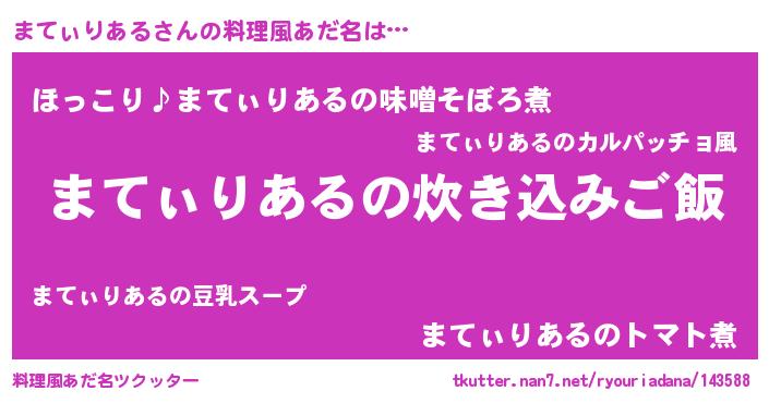 | 恥ずかしいあだ名 | 『プリティーまてぃりある』『まてちん』 |