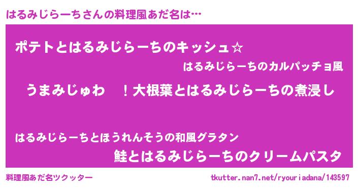 | 胡散臭い通販商品みたいなあだ名 | 『運命の人と巡り会える高級そうな皿…その名も「はるみじらーち」』 |