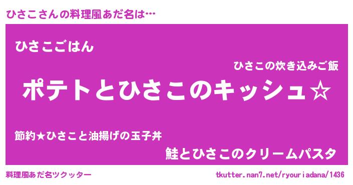 | 男性向けラノベタイトル風あだ名 | 『ひさこの嫁は女の子じゃないと思った?』 |