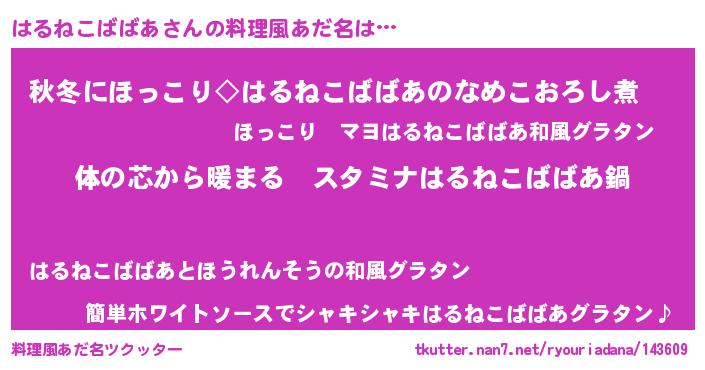 | 欧米人風あだ名 | 『はるねこばばあクリステル』 |