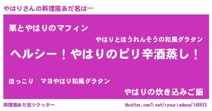 | 男性向けラノベタイトル風あだ名 | 『Re:やはりから始める異世界生活』 |