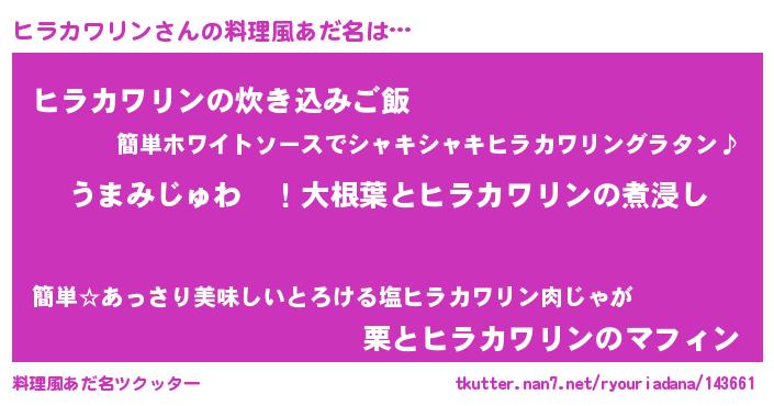 | ファンタジー風あだ名 | 『エターナルヒラカワリンー』 |
