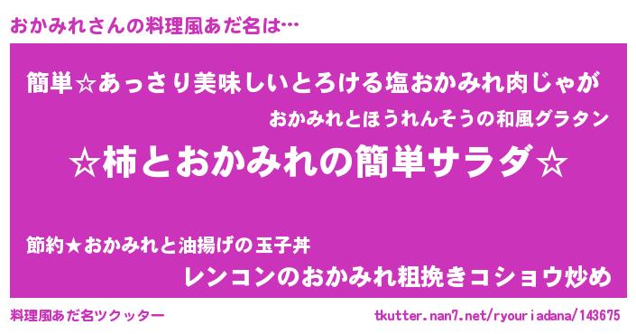 | 意味不明あだ名 | 『永久保存おかみれ』『自称おかみれ』 |