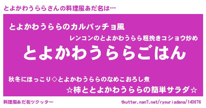 | ヘコむあだ名 | 『とよにー』『とよかわうらら(苦笑)』 |