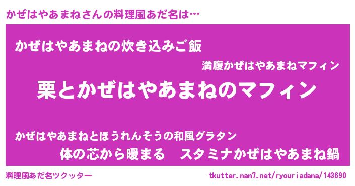| 胡散臭い通販商品みたいなあだ名 | 『幸せが訪れる高級そうな絵画…その名も「かぜはやあまね」』 |