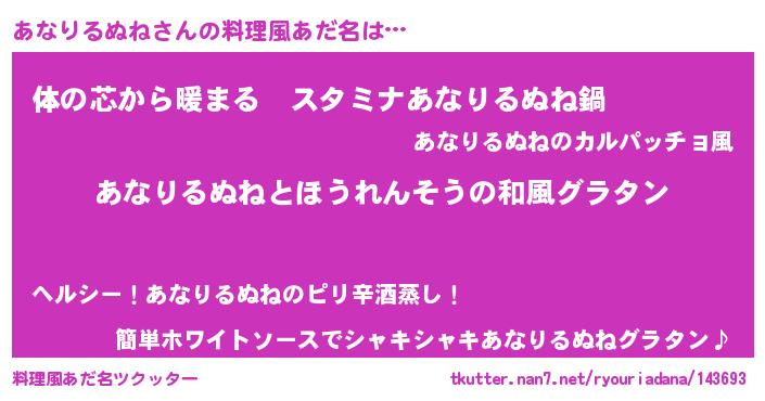 | 男性向けラノベタイトル風あだ名 | 『転生したらあなりるぬねだった件』 |
