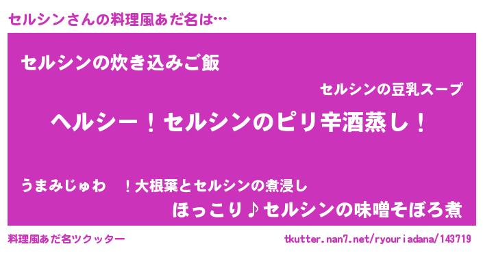 | 男性向けラノベタイトル風あだ名 | 『Re:セルシンから始める異世界生活』 |