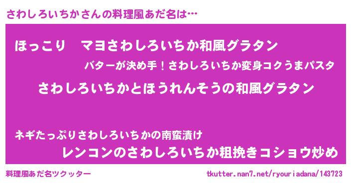 | 男性向けラノベタイトル風あだ名 | 『さわしろいちか~年齢イコール彼女いない歴の魔法使い~』 |