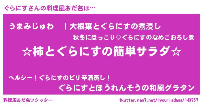 | 恥ずかしいあだ名 | 『ぐらっちょ』『グラニスデラックス』 |