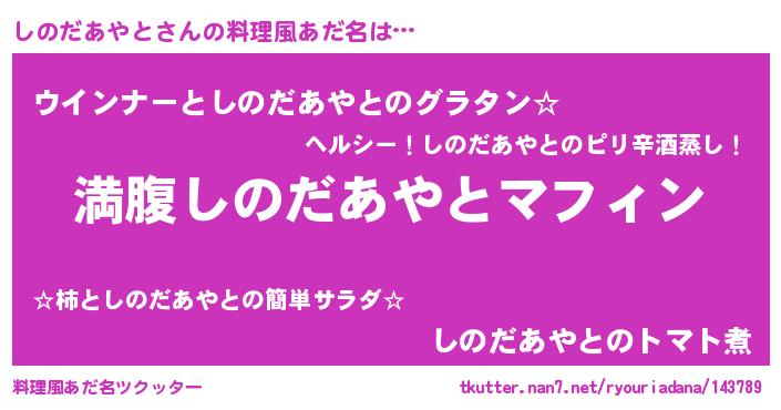 | 女子向けラノベタイトル風あだ名 | 『異世界で失敗しない100のしのだあやと』 |