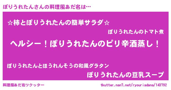 | 男性向けラノベタイトル風あだ名 | 『Re:ぽりうれたんから始める異世界生活』 |