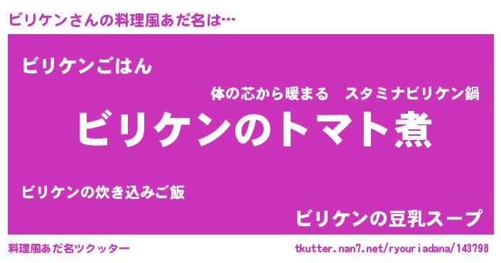| 女子向けラノベタイトル風あだ名 | 『ビリケン夫妻のなれそめ』 |