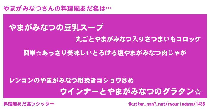| 胡散臭い通販商品みたいなあだ名 | 『前代未聞の健康食品…その名も「やまがみなつ」』 |