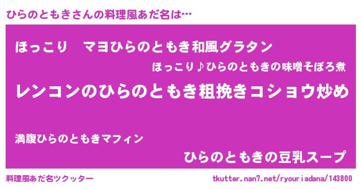 | ヘコむあだ名 | 『ひらを』『ひらにー』『豆乳』 |