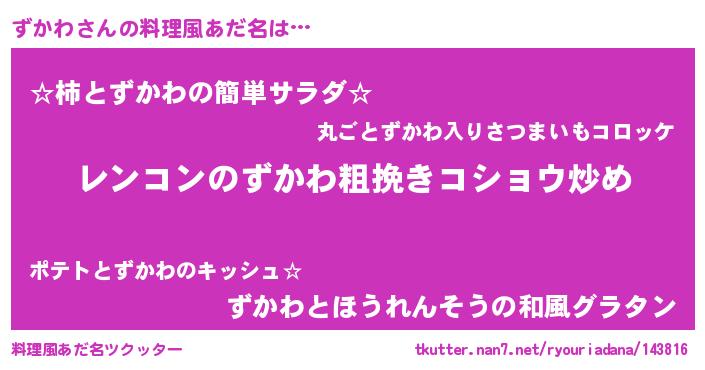 | 意味不明あだ名 | 『自称ずかわ』『エリンギ科ずかわ属』 |