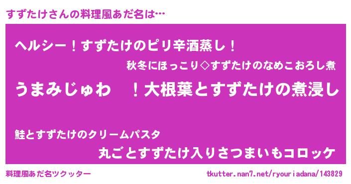 | 胡散臭い通販商品みたいなあだ名 | 『運命の人と巡り会える高級そうな皿…その名も「すずたけ」』 |