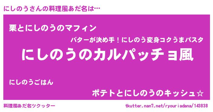 | ピコ太郎風あだ名 | 『ニシ十郎』『ニニ太郎』『ピニ次郎』 |