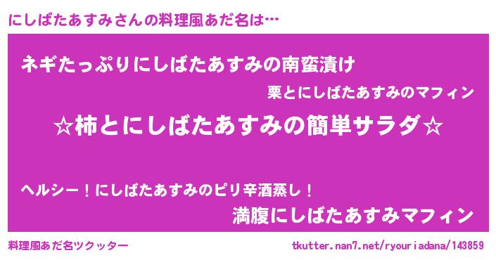 | ヘコむあだ名 | 『にしもー』『にしばたあすみ(笑)』 |