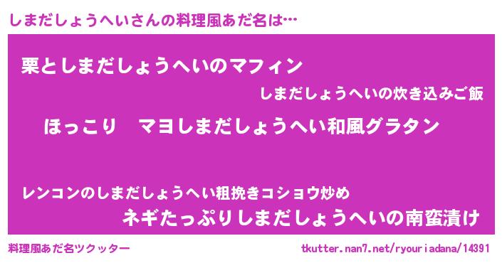 | 意味不明あだ名 | 『住所不定無職しまだしょうへい(56歳)』 |
