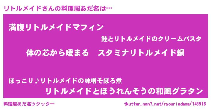 | 女子向けラノベタイトル風あだ名 | 『リトルメイドの雑貨屋さん』 |