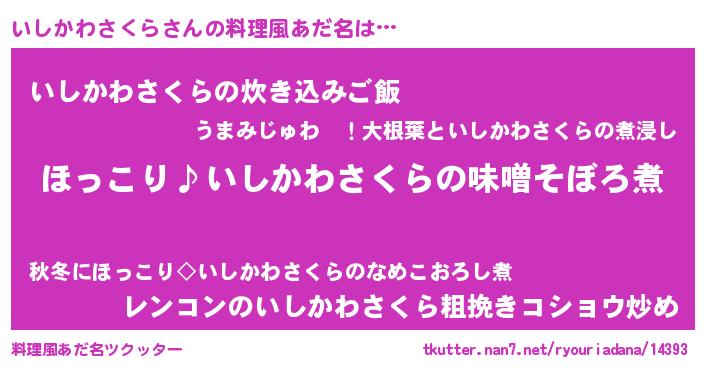 | 恥ずかしいあだ名 | 『プリティーいしかわさくら』『いしちん』 |