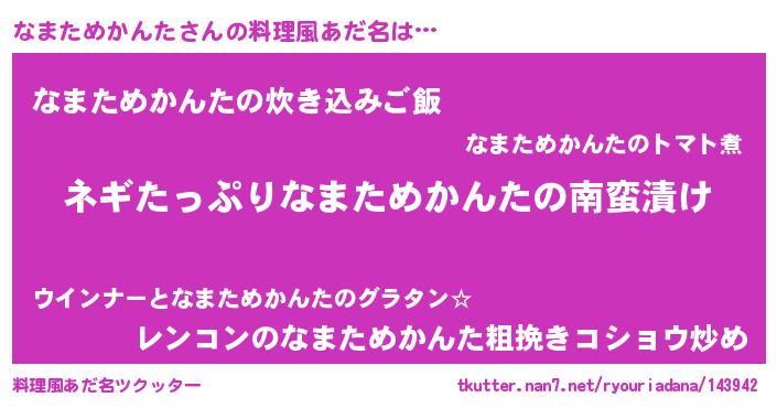 | 男性向けラノベタイトル風あだ名 | 『ナマタメカンタアートオンライン』 |