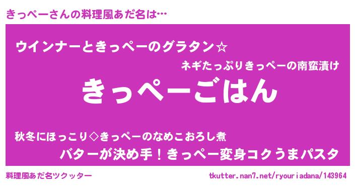 | 意味不明あだ名 | 『めかぶ科きっぺー属』『自称きっぺー』 |