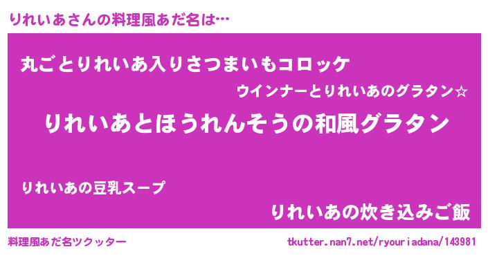 | 欧米人風あだ名 | 『トリンドルりれいあ』 |