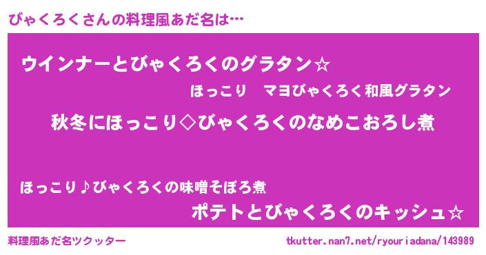 | ポケモン風あだ名 | 『ビャゴンZ』『ビャクダネ』 |