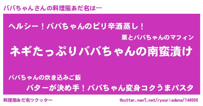| 意味不明あだ名 | 『ペロリンババちゃん』『自称ババちゃん』 |